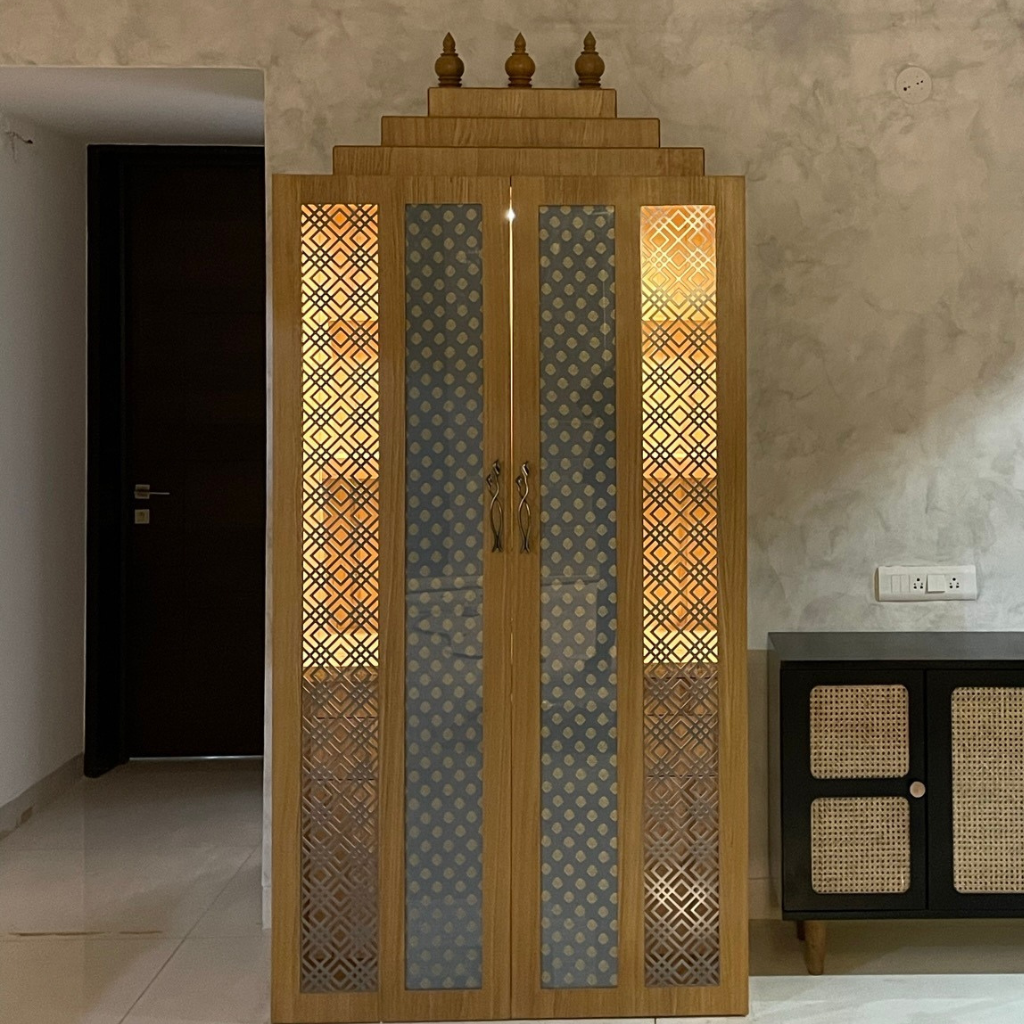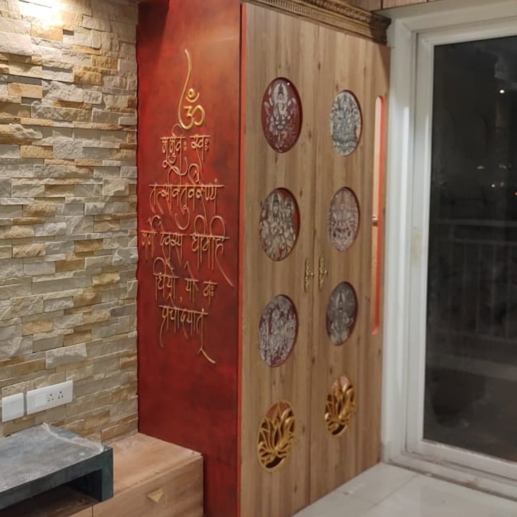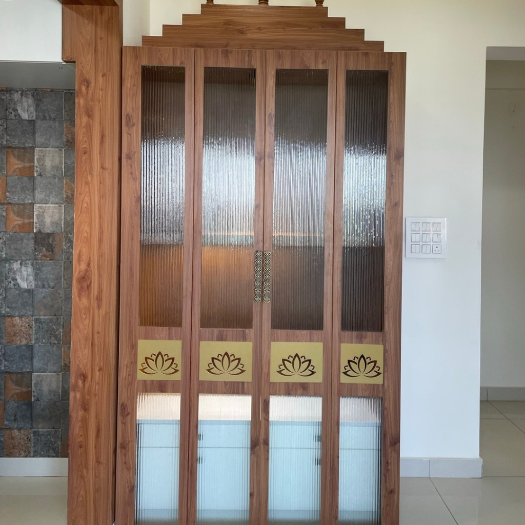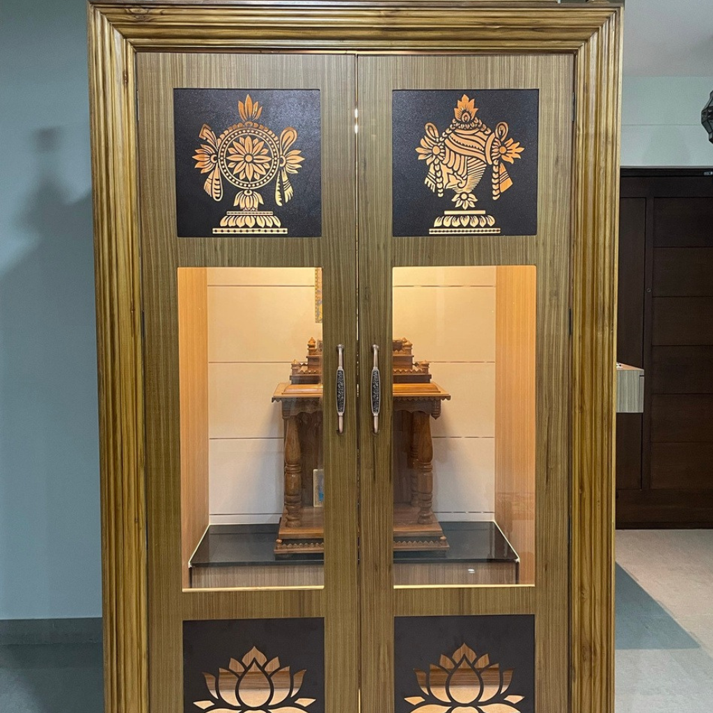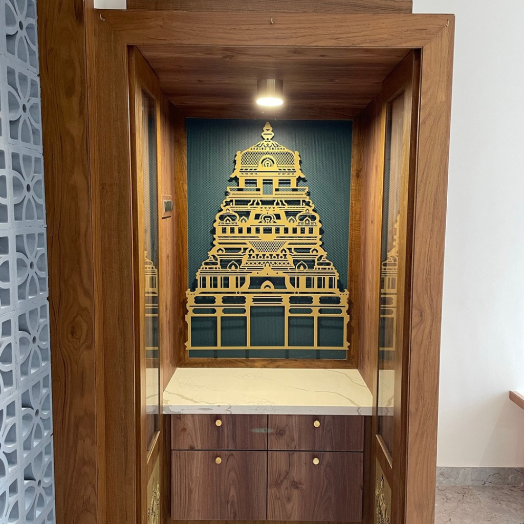 A Pooja room in a home serves as a sacred space where one can connect with their spiritual beliefs, practice rituals, and find peace and tranquillity amidst the hustle and bustle of everyday life. It stands as a deeply personal domain for one, so we take pivotal consideration and understand the client’s beliefs while designing and creating such spaces. Each of the Pooja rooms we craft embodies distinctiveness, mirroring the uniqueness and beliefs of our clientele.